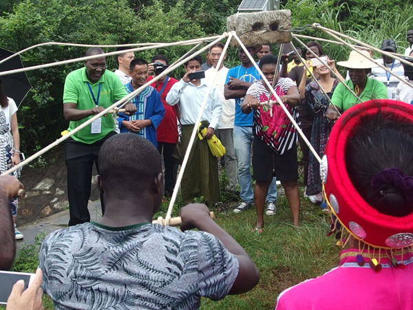 高峰土家族乡茅庵水库《慈利打硪号子》拍摄现场。汪超摄