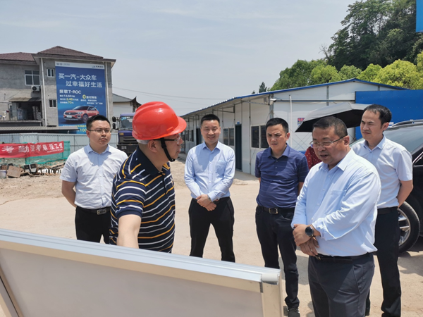 慈利县委书记侯铁夫(前右1)在三官寺土家族乡株木岗村壮举演艺剧场听取汇报。黄国军摄