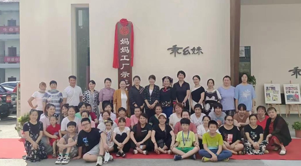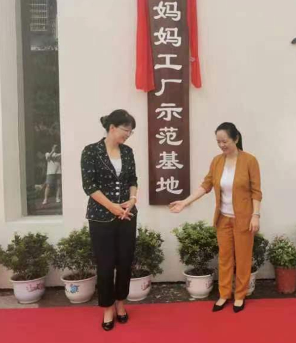 黄芳(左)为乖幺妹妈妈工厂示范基地揭牌