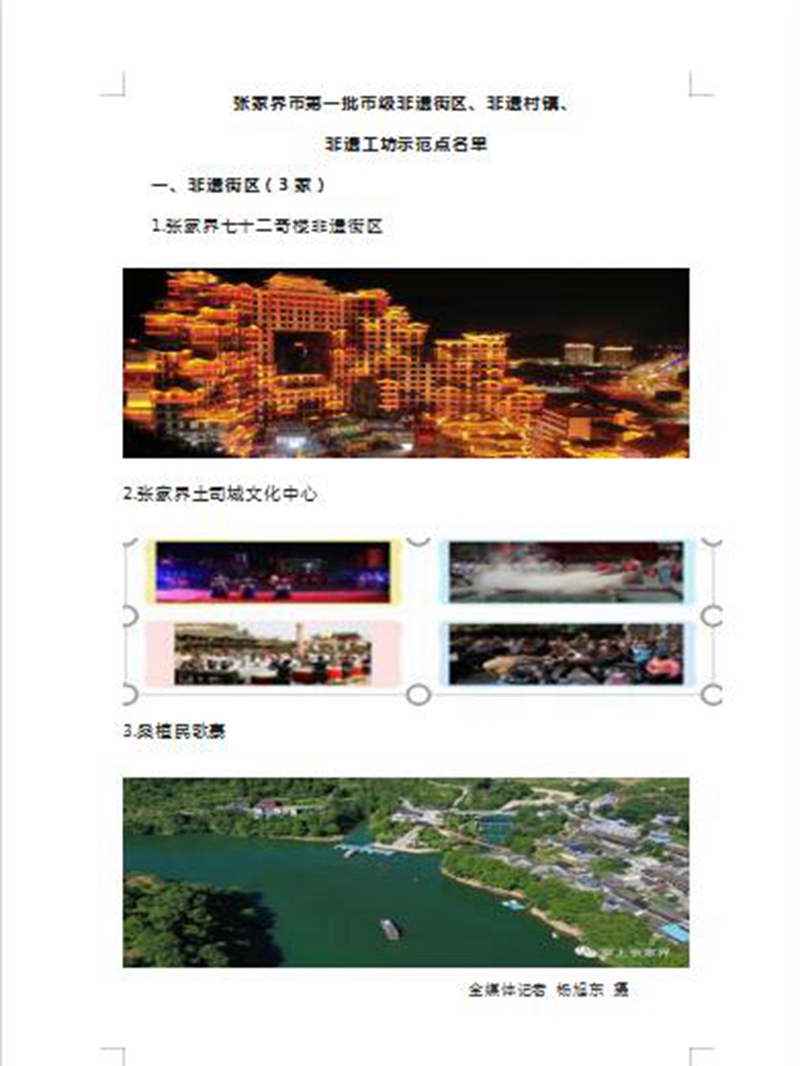 张家界市第一批市级非遗街区、非遗村镇、非遗工坊示范点名单公布