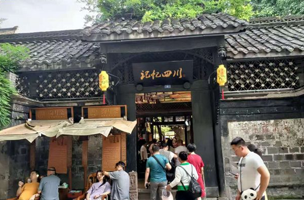 图为宽巷子中间的记忆四川四合院,门外是四川特技采耳、院内品茶、小吃、住店,清一色的“四川往事”的再现。(摄影 熊文渊)