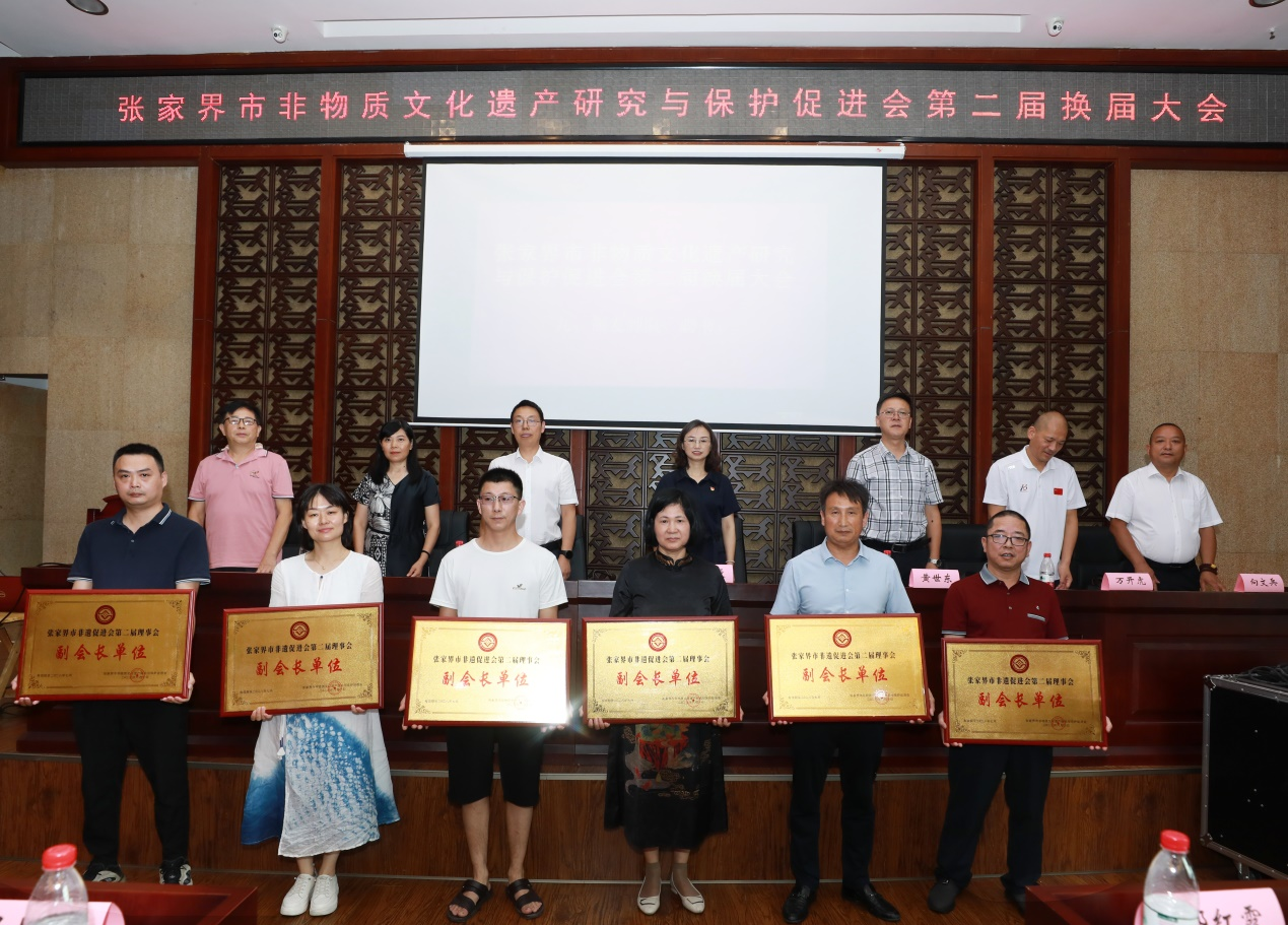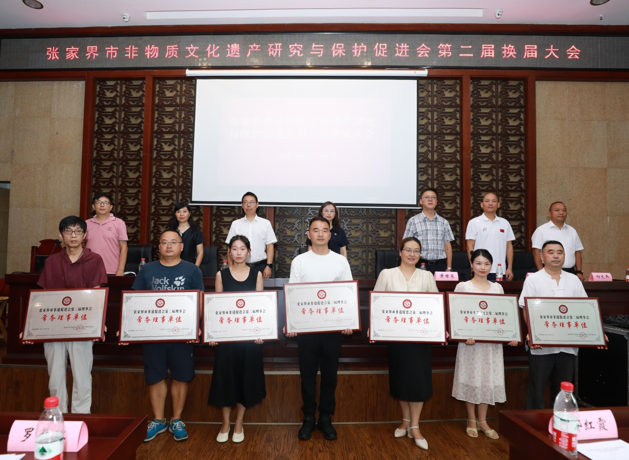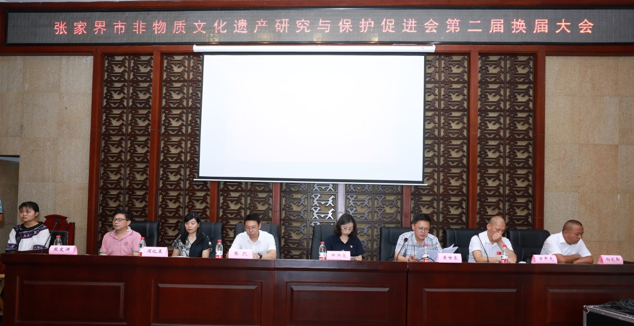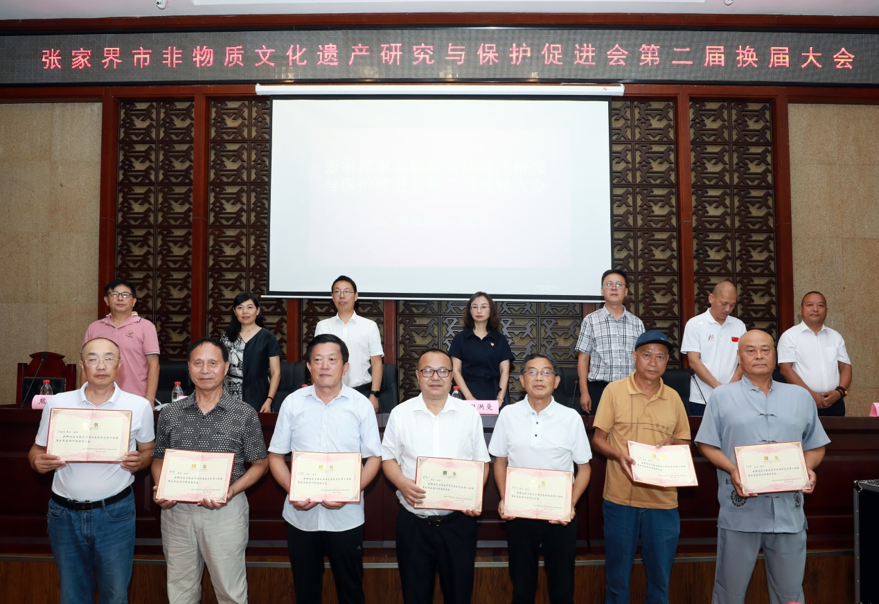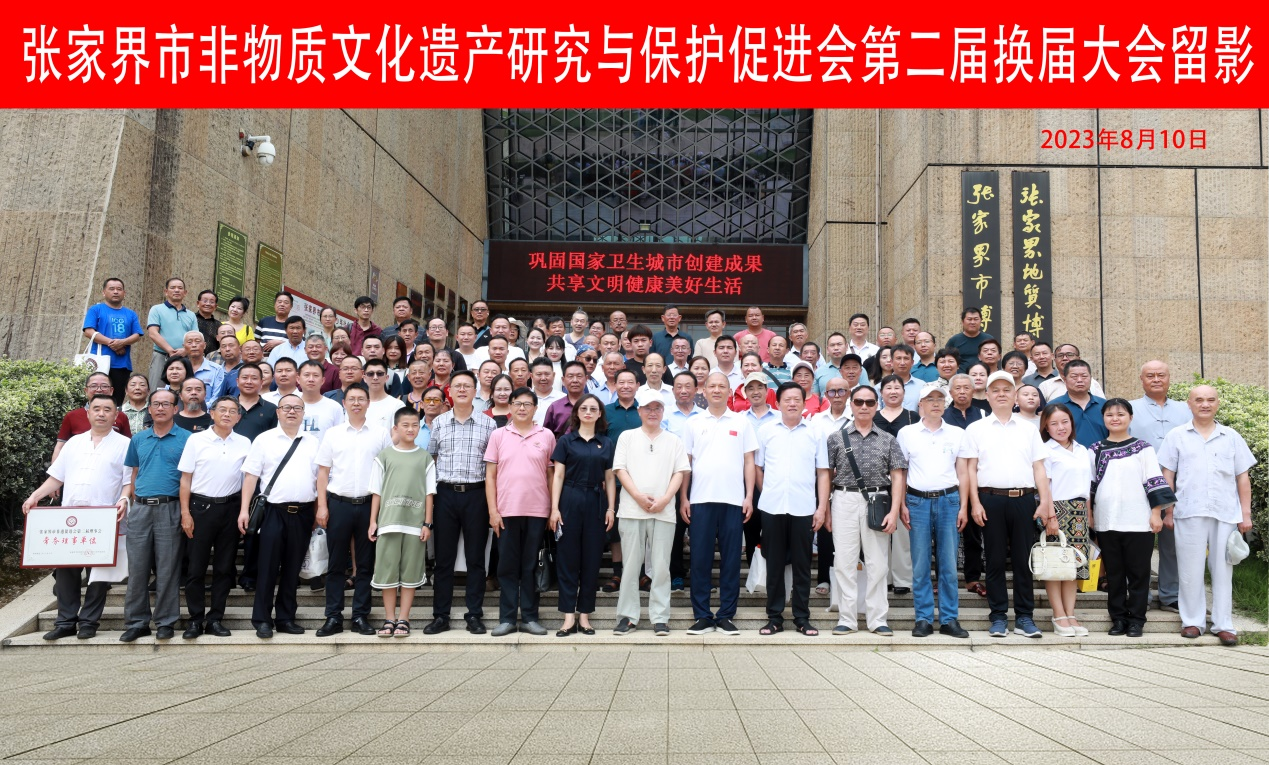 2023年8月10日,张家界市非物质文化遗产研究与保护促进会第二届换届大会在市博物馆学术厅召开,全市非物质文化遗产研究与保护促进会123名会员参加。市文旅广体局班子成员、总工程师田红曼,市民政局副局长黄世东,市民宗局副局长万开虎,市文旅广体局产业发展与非遗科科长张凯,市财政局文化旅游和对外经济贸易科科长向文兵,市科技局法制与科技监督科科长周化玉参加了大会。市政协原副主席罗长江出席了会议,市政府原常务副市长杜芳禄发来了贺词。