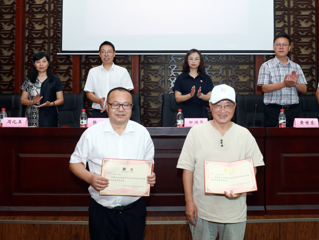 会上,到会领导对新一届副会长单位、常务理事单位武陵源乐乐幼儿园、张家界湘妹子食品有限公司、张家界地道文旅策划旅游有限公司、张家界丝丝湘食品有限公司、湖南乾坤科技有限公司、黄龙洞投资股份有限公司、慈利大世界幼儿园、湖南书望家食品有限责任公司、张家界龙马烙铁画文化产业开发有限公司、张家界富正毅三下锅餐饮管理有限公司、张家界童天教育科技有限公司、慈利县粮食幼儿园、慈心教育等单位颁发了牌匾。对到会的理事会顾问罗长江、戴楚洲和专家赵辉廷、龚岳雄、李海洲、熊雁鸣、吴建国、李文锋等颁发了聘书。
