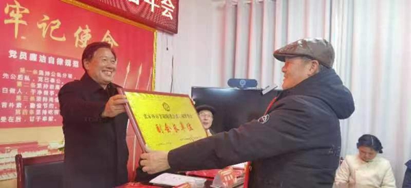 2024年1月18日,原常务副市长杜芳禄在张家界市非遗促进会迎春年会上为本文作者授牌。