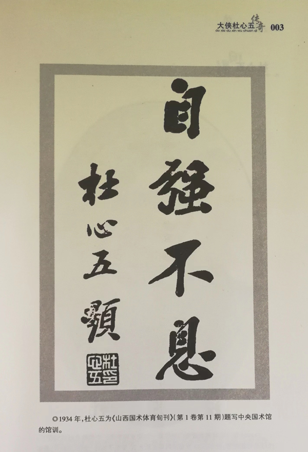 “辛亥革命先驱”“中华民国元勋”杜心五能够飞檐走壁,穿房越脊。身怀绝迹的杜心五曾任中国同盟会总理孙中山的保镖,被人称为“中华第一保镖”。中华民族精英杜心五在人生航程中,总是顺应中国历史发展潮流,做时代的弄潮儿。中华自然门武术家杜心五以其传奇生涯,亲身经历习武以求安身立命、革命以求国体革新、抗日以求国强民富,可谓“名扬天下,盛享赞誉”。