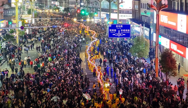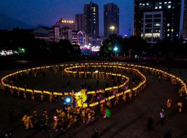 国家级非遗项目板板龙灯在慈利县城表演。