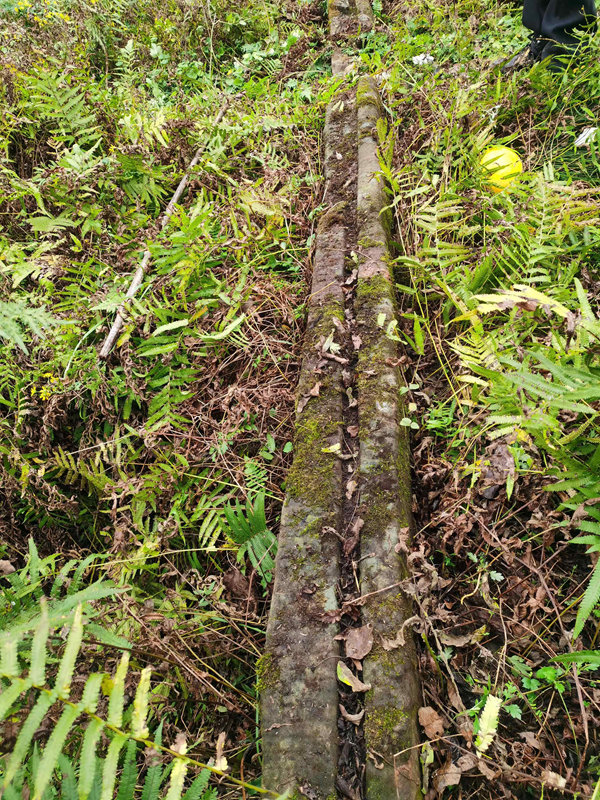 当我们随着原王家坪村书记赵吉林和长峪村书记江克明,来到河边公路之上,映入眼帘的是消逝了近60年的滑潭铺。她就那么静静地仰面向天躺在大地上,一定都不尴尬,一点都不羞涩。她不怕人们看见她的破破烂烂,店铺房子已然不在,扒开枯叶乱草,露出一排排屋基,是长长的石头岩板做的,中间凿出一条凹槽,木板壁架在上面,便于上、下铺板;屋里石板砌成的茅厕坑,已没有一点异味,石板的缝隙之间拥挤着一蓬蓬野草。铺子是两面对开,中间一条石板路,也就是上接20里地的江垭、下接15里地的三家店的官道,铺子后面一面临高坎,一面是田地。