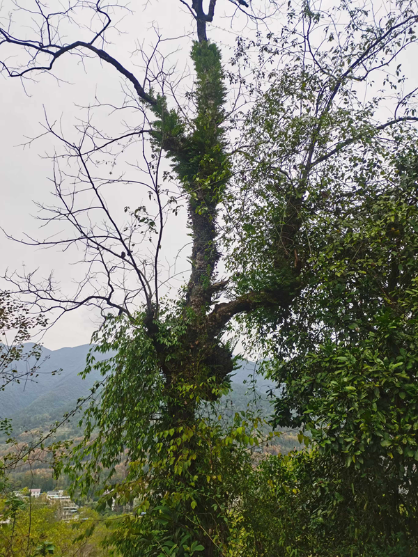 图为滑潭铺边的古拐枣树,这株虬枝苍劲奇崛、树干节瘿斑驳的拐枣树,历尽几百年沧桑,见证了历史,见证了解放军活捉匪首张沼吴。如今仍静静地守护着这片土地。