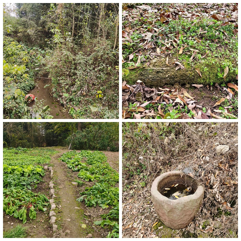 这条麻寮铺后面通往油榨桥的小土路,还悄悄地藏在几户农家的菜地里,散发着几百年古老的气息。粑粑铺舂了几百年米的碓码凹被农人丢弃在野地里。