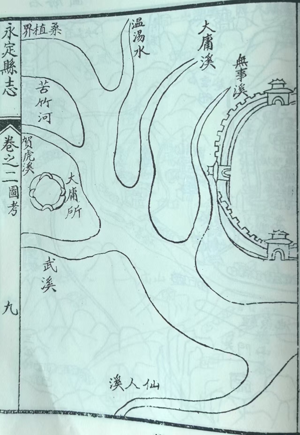 清代《道光永定县志》标示的大庸溪和大庸所的位置