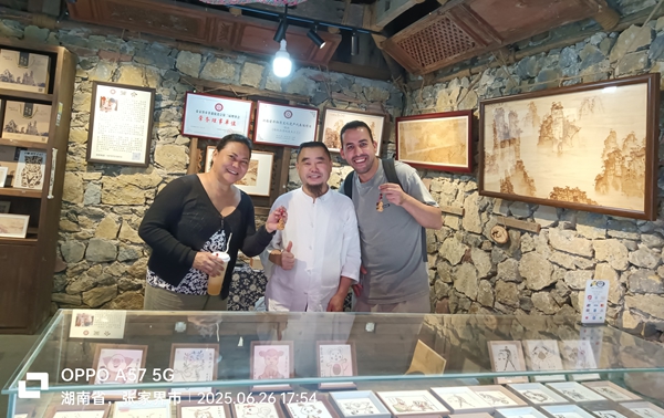 在千古情景区,邓师华不仅现场创作,还热情地向游客讲解烙铁画的历史与技法,让大家在欣赏艺术的同时,更深入了解张家界的自然之美与文化底蕴。烙铁画成为一扇窗口,让世界看到张家界的无限风情。