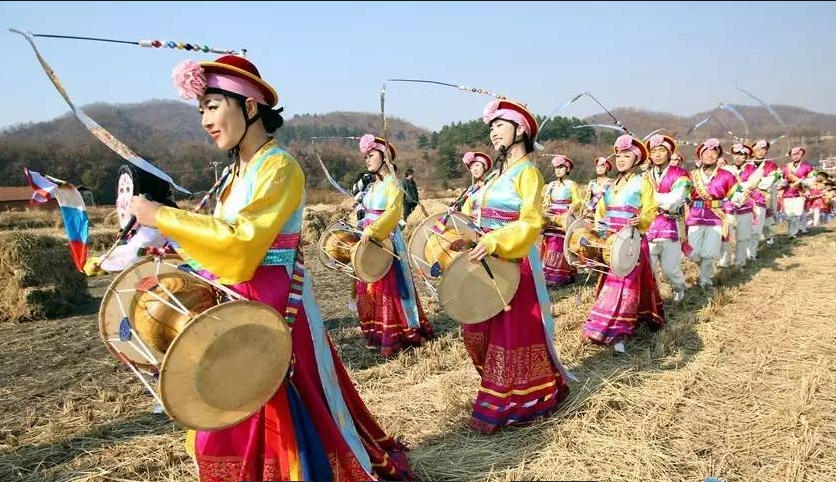 中国朝鲜族农乐舞(亦称"农乐")是朝鲜族传统农耕文化的活态遗存,2009年被列入联合国人类非物质文化遗产代表作名录。其历史可追溯至原始农耕祭祀活动,随着朝鲜族迁入中国东北(19世纪中叶后)逐渐本土化,成为融合歌舞、器乐、杂技的综合性民俗艺术。
