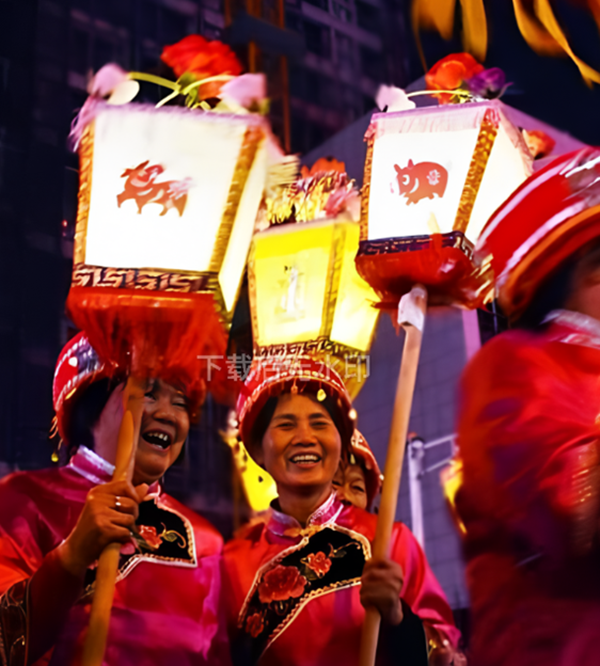 高花灯寓意深刻。12个灯表示12个月,月月平安无事。每年春节,每个村寨都要操练一班高花灯,辞旧迎新。制作时,艺人用竹篾和纸扎糊成12或24个灯笼,在灯笼下加上一个长柄灯托,并在灯笼上扎上五颜六色的“故事”,如“八仙”、“耿氏送子”等。夜晚,在灯笼里点上木油腊烛,一人举一个灯笼,边舞边组成多种队形。一眼望去,流光闪烁,尤如银河戏舞。