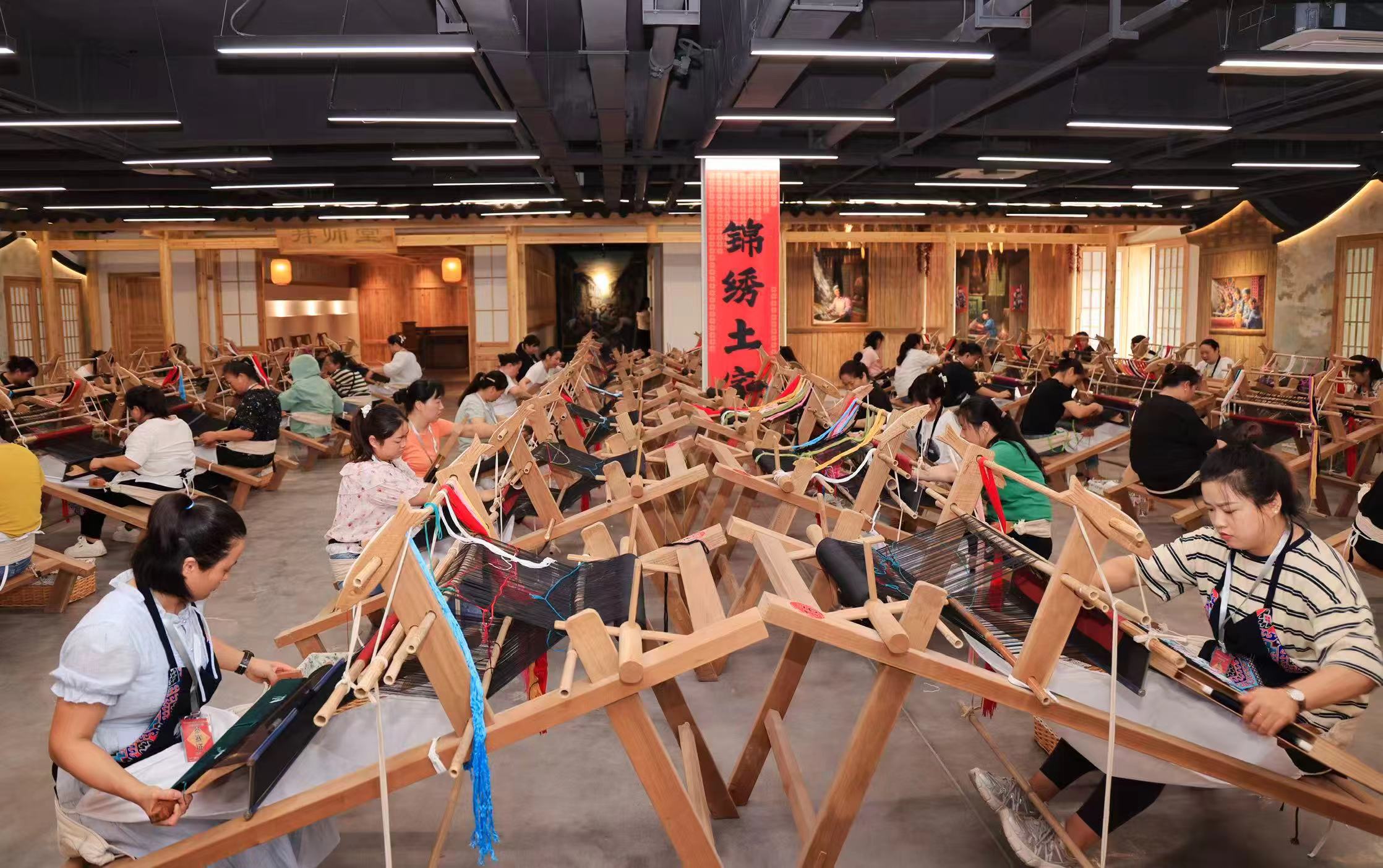 当夕阳掠过创意园200台织机的经线,丁世举常驻足凝视: 一面是60多岁的传承人指尖翻飞,重现秦汉“对斜纹”的古朴; 另一面是95后设计师在平板电脑上勾画火箭穿云纹样。
