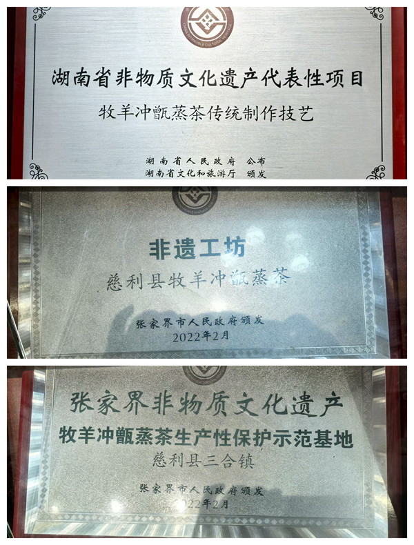 牧羊冲村位于慈利县三合镇西南部,地势北高南低。源自南、北山脉的两条溪流汇于中间长峪之中,故被称为“小溪峪”。1953年至1958年,小溪峪乡管辖小溪等村。1984年,慈利县三合口乡把小溪大队恢复为小溪村,管辖牧羊冲等村民小组。2016年,慈利县三合镇把小溪村和土地垭村合并为“牧羊冲村”,面积为5.5平方公里。2016年,慈利县三合镇牧羊冲村被湖南省茶叶学会评为“湖南省十大最美茶叶村”。2017年,张家界牧羊冲茶马古道景区又被湖南省茶业协会评为“湖南省十佳茶旅景区”。2020年,慈利县三合镇牧羊村被湖南省农村农业厅评为“湖南省乡村振兴示范建设村”。2021年,慈利县三合镇牧羊冲村被中共湖南省委实施乡村振兴战略领导小组办公室授予“湖南省省级乡村振兴示范创建村”称号。2021年12月,慈利县三合镇牧羊冲村万亩茶园被农业农村部发布为“中国美丽乡村休闲旅游行精品景点线路”。近几年来,土家族制茶师高忠垠多次带我游览牧羊冲茶旅景区。徜徉在民族地区茶马古道上,探访牧羊冲村茶旅产业的历史渊源和发展现状,我感觉到牧羊冲茶文化源远流长,茶产业发展脉络清楚,不仅传承“甑蒸绿茶”,而且曾制“宜红名茶”。