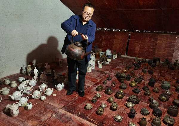 湖南省地名专家库专家戴楚洲观赏高忠垠所藏煮茶器物