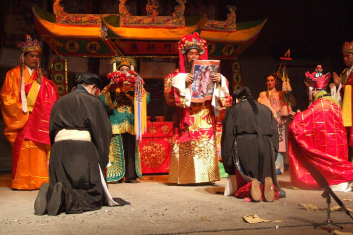 桑植目连戏图片:在死人子的家里摆场子做道场