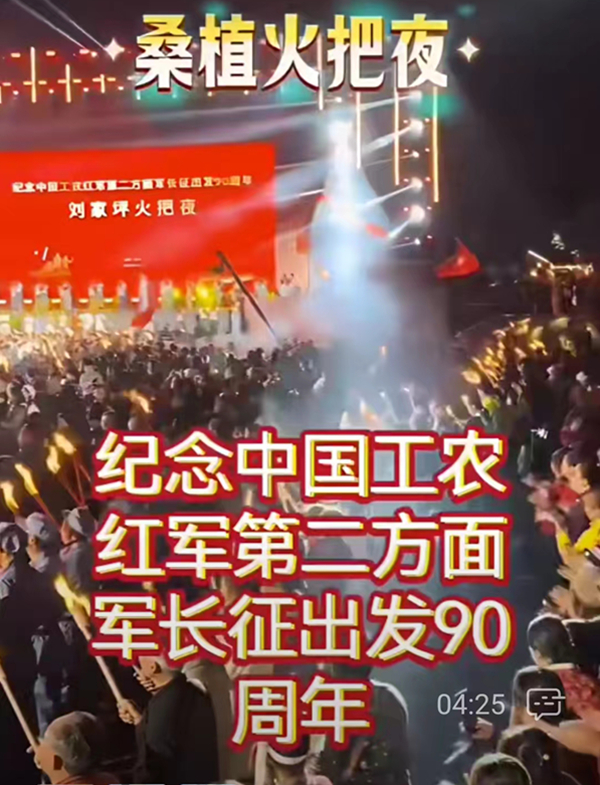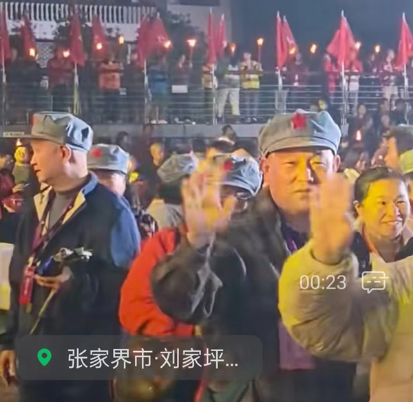 2025年11月16日夜,我以牺牲了的红军烈士张光荣(清云)侄孙、红军连长张光忠孙子身份与“张家界市红色后代信息采集办公室”采集的红军烈士覃辅臣、覃奉章、覃正顺、胡雪禄、龚福卿等后代10人,应邀参加桑植县人民政府在刘家坪举行的“纪念红二方面军长征出发90周年活动”,这是一份光荣和责任。现场万人空巷,手举火把,星光闪烁,再现了当年长征出发时的情景,观节目期间,令我数度硬咽,满目泪水,我又有幸近距离接触,拍摄了坐在轮椅上的贺捷生将军,并2次与其握手,致意这位出生19天就开始长征的英雄。致敬英勇的红军先辈们!回来后,夜不能寐,令作: