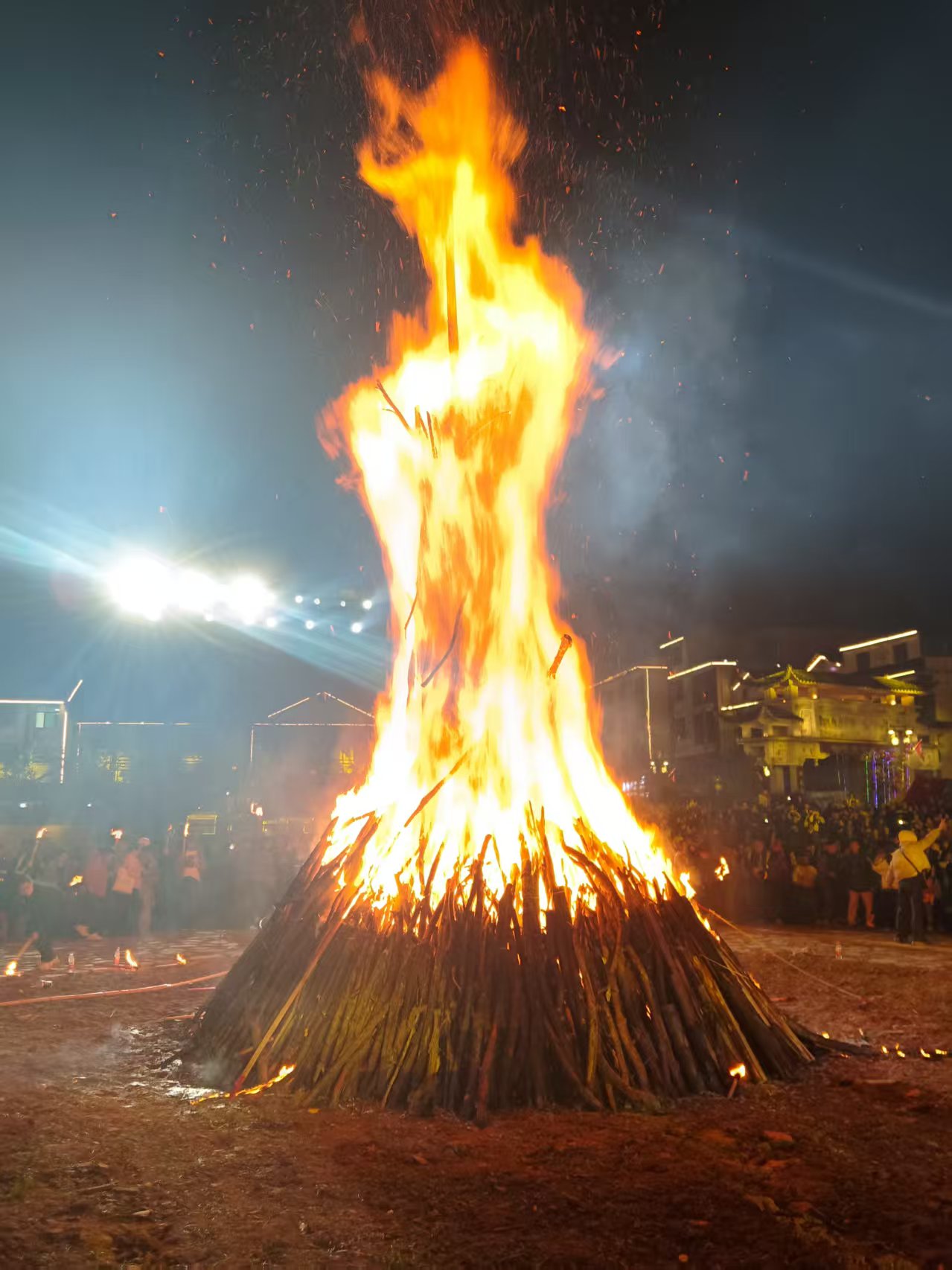 刘家坪火把节广场中央燃烧的火把